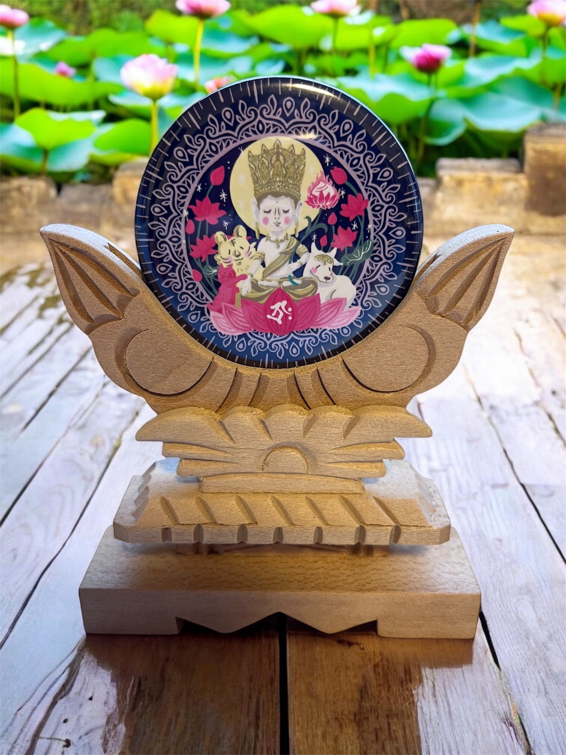 やさしく描かれた虚空蔵菩薩さまが、あなたのこころに光を灯します。この57mmのミラーは、手のひらに収まるサイズながら、深いメッセージを持つデザイン。虚空蔵菩薩さまは、無限の知恵と慈悲を象徴し、心を整える時間に、ともにある存在です。丑年・寅年生まれの守り本尊として、生涯そっと寄り添ってくださいます。この小さな作品が、あなたのこころに光を灯します。